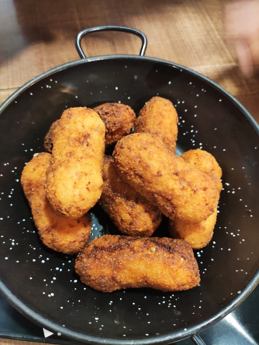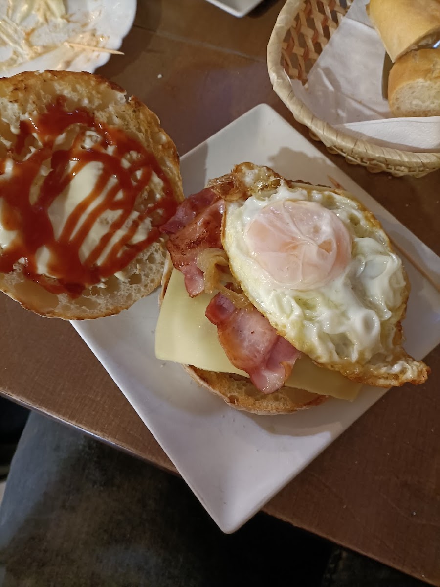 Pedimos 3 raciones y una hamburguesa, empezamos con ensaladilla rusa, muy buena pero lamentable la presentación, es una cucharada de ensaladilla literalmente, sobre lechuga no muy fresca que digamos, seguimos con las croquetas que eran muy sin mas sin sabor alguno, el crujiente perfecto eso si, los torreznos tenian buena pinta pero les faltaba el crujiente tipico del torrezno y por ultimo la hamburguesa de wagyu que con eso si acertamos estaba deliciosa pero llena mucho si comes poco no te la recomiendo y por ultimo quiero destacar a la camarera una curranta nata se la ve que sabe trabajar, tiene ese nervio que todo camarero necesita